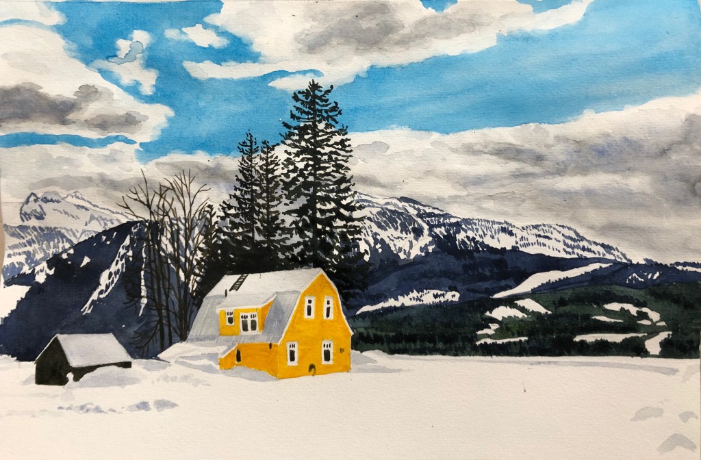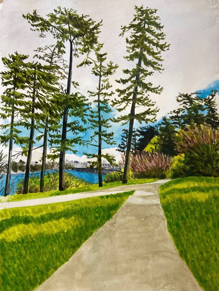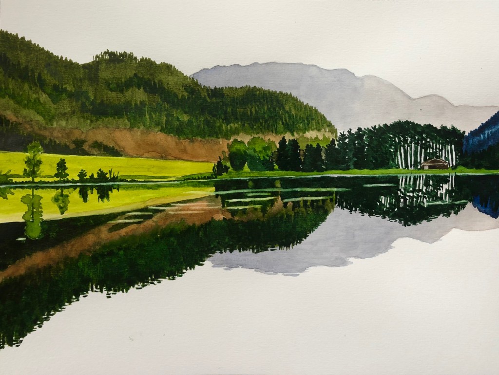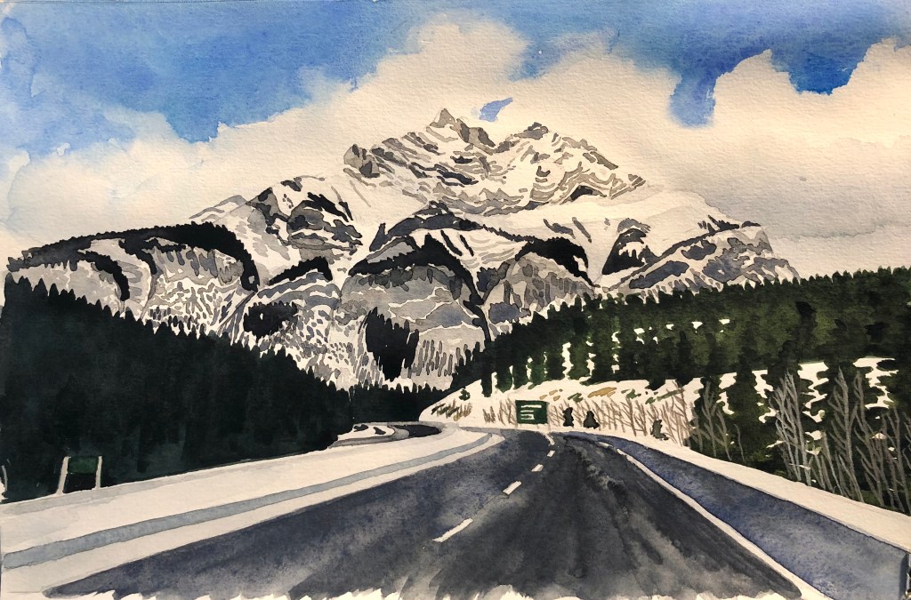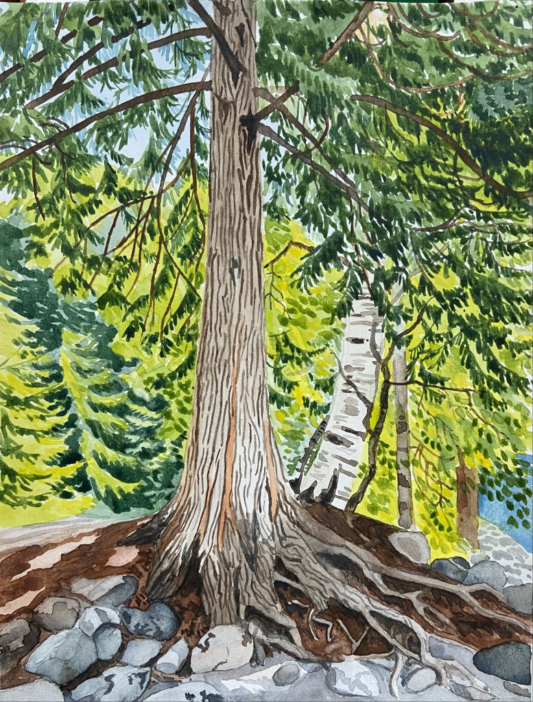 Banfield Park pathLake Louise, spring meltCascade Mountain, on the road to BanffNear Revelstoke Little Elbow River, on a cold day in June. Township Rd 274, Alberta. 16 x 12″Toad Lake (sold)Looking up in the forestKaslo River trail Incense Cedar, Vic WestSmelt Bay, Cortes Island